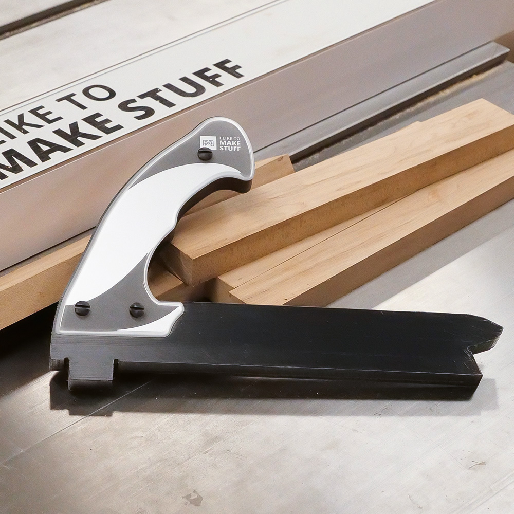 Our table saw push stick keeps your hands clear of the blade while guiding the material through the cut. It’s made from recycled HDPE plastic and won’t chip or crack if passed through the saw blade. After extensive use, you can easily swap out the lower foot with our included replacement and keep on making stuff safely in your workspace.